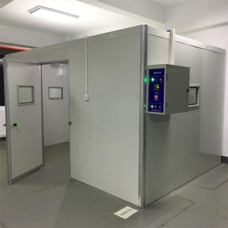 2025/9/30 2025/9/30 大型步入式恒温恒湿试验箱满足标准及结构概述一、大型步入式高低温试验室满足标准1、《高温试验箱技术条件》GB11158-20082、《低温试验箱技术条件》GB10589-20063、《高低温试验箱技术条件》GB10592-20084、《电工电子产品环境试验第2部分试验方法试验A低温》GBT2423.1-20085、《电工电子产品环境试验第2部分:试验方法试验B:高温》GBT2423.2-2008二、大型步入式高低温试验室结构1、大型步入式高低温试验室空调循环系统:空调循环系统采用低噪音风机,其作用是强迫调温调湿后的空气均匀流经试验区。由控制系统根据当前试验状态自动调节。2、大型步入式高低温试验室环境温度模拟系统:由于试验室装有隔热围护结构,当试验室温度高于外界环境温度时,通过围护结构的散热量小于室内热源的发热量,因此无论试验室温度高于或低于外界环境温度,为保持试验室温度稳定,都需要制冷设备。室内加热器由SSR执行,用于平衡室冷量,终达到平衡恒温的目的,室内加热器使用加热器。3、大型高低温试验室环境湿度模拟系统:加湿器由SSR执行。室内加湿器使用电热加湿方式。加湿用水经过过滤、软化处理。4、大型步入式高低温试验室围护结构:使用良好隔热性能的聚氨酯为保温材料,外面由喷涂钢板、内为不锈钢板做的夹芯式库板,采用拉筋安装方式,现场快速拼装方式。5、大型步入式高低温试验室电控系统:具有主要技术参数(温度、湿度等)实时运行记录功能及报警功能。